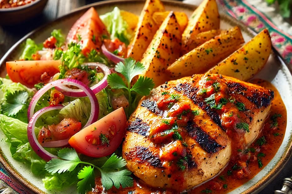 - Sirve el pollo a la parrilla con la salsa de aji picante.