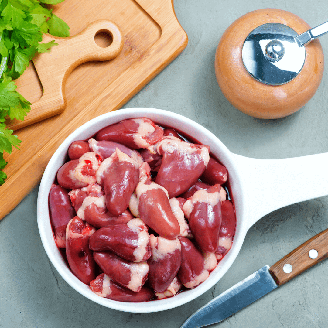 Hígado de pollo fresco, rico en proteínas y nutrientes.