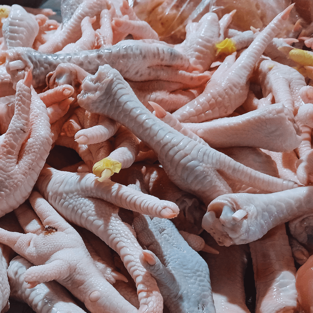 Patas de pollo, perfectas para preparar deliciosos caldos o salsas.